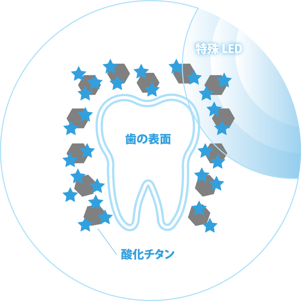 特殊なLED照射することによって歯の表面上で